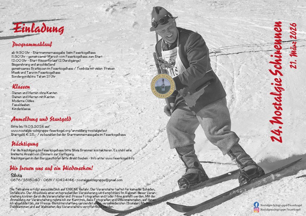 23. Nostalgiefest Feuerkogel 22.3.2025 – Einladung / Programm / Anmeldung
